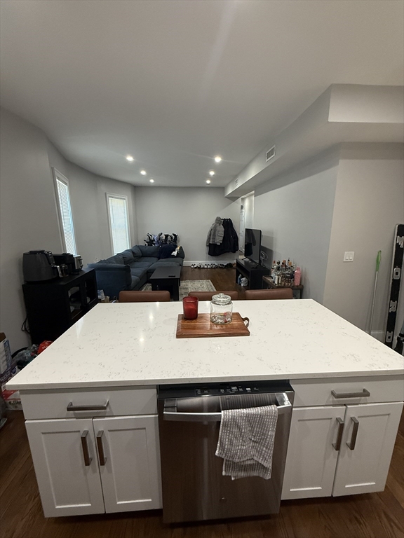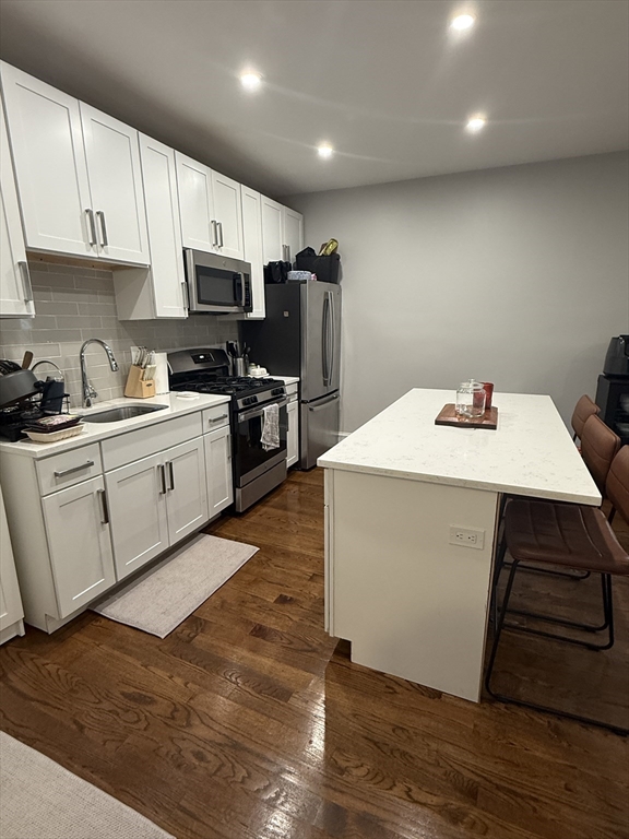 This recently renovated apartment is huge! The open concept floor plan features a spacious island and plenty of new white shaker cabinets with white quartz countertops along with stainless steel appliances and hardwood floors throughout, except in the 2 full bathrooms where white tile floors and walk in showers featuring glass doors! With laundry and central air conditioning in the unit, and great deck, what else do you need!? The location is ideal .04 mile to JFK redline station or I-93 to make commuting a breeze! Close proximity to shopping, restaurants, beaches all the nightlife Boston has to offer!