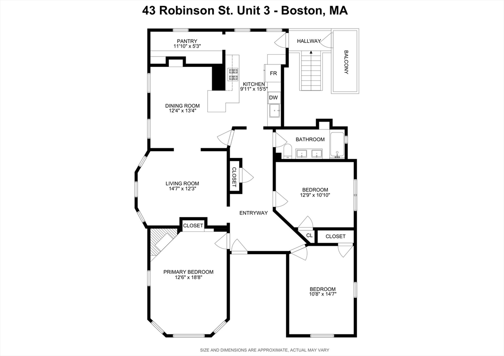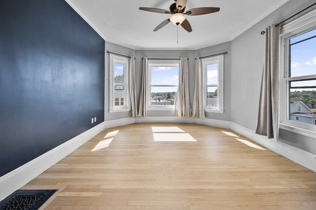 Welcome to Unit 3 at 43 Robinson Street, a stunning top-floor condo nestled in the heart of Meeting House Hill--one of Dorchester's most desirable neighborhoods. Overlooking Ronan Park, this beautifully renovated home offers the perfect blend of classic charm and modern comfort. Renovated in 2021, this unit combines thoughtful design with high-quality finishes, including central air conditioning, a custom kitchen, and private outdoor space with park views. There are three spacious bedrooms with hardwood floors throughout, a custom kitchen featuring stainless steel appliances, stone countertops, and a large walk-in pantry! The stylish bathroom has shiplap walls, double sinks, and designer fixtures. There is a private rear deck overlooking Ronan Park -- perfect for relaxing or entertaining! Two tandem parking spots, designated storage space in the basement, along with private laundry. Roof / drain replaced in '21. Hot water tank '22. Healthy Reserves!