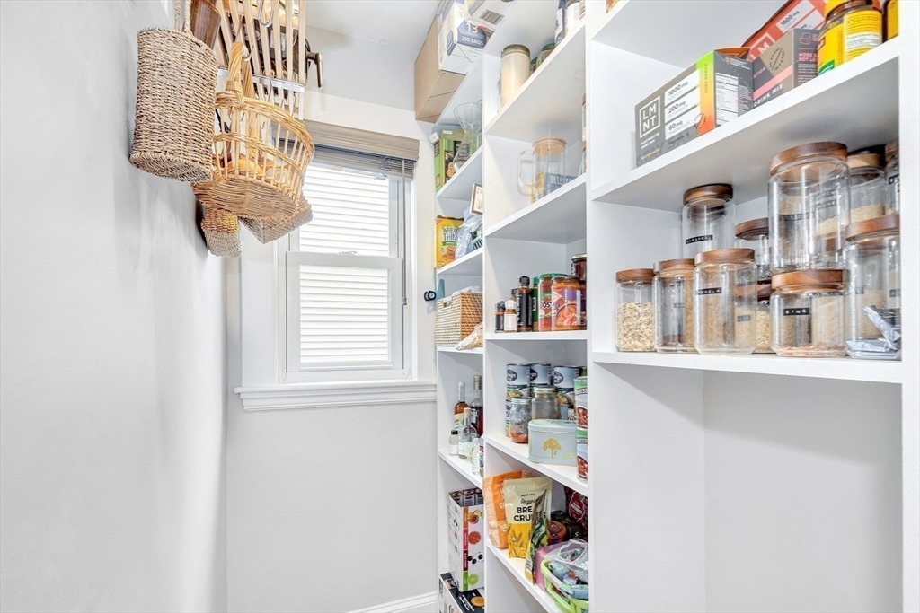 Enjoy the ease of first-floor living in this charming two-bedroom, two-bath condo in Roslindale. Thoughtfully updated for comfortable, modern living, the home welcomes you with tall ceilings, crown molding, original hardwood floors, and an open layout that flows easily. The kitchen offers sleek finishes like quartz countertops, shaker cabinets, stainless steel appliances, and a walk-in pantry, all blending function with everyday style. The primary bedroom includes a private en-suite, while the second bedroom is ideal for guests, a home office, or whatever your layout requires. Central air, in-unit laundry, a full guest bath, basement storage, and two parking spaces, including one garage to add convenience. Step outside to the back yard with a patio area complete with a grill and furniture, perfect for relaxing or entertaining. Located near Roslindale Village, the Arnold Arboretum, local dining, MBTA buses, and Commuter Rail access.